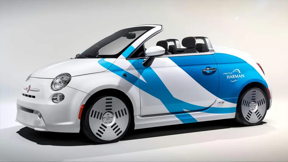 شرکت هارمَن اینترنشنال در نمایشگاه CES سال 2019، کانسپتی از فیات 500e را به معرض نمایش گذاشت که برای خودروی کوچکی همچون 500e با طرحی برگرفته از خودروهای قدیمی، از نظر تکنولوژی بسیار پیشرفته بود. از مهمترین آنها میتوان به مجموعهای از چندین تکنولوژی اشاره کرد که این کانسپت را قادر میسازد محیط اطرافش را تحت نظر گرفته، ثبت کند و حتی آن را مورد ارزیابی قرار دهد.