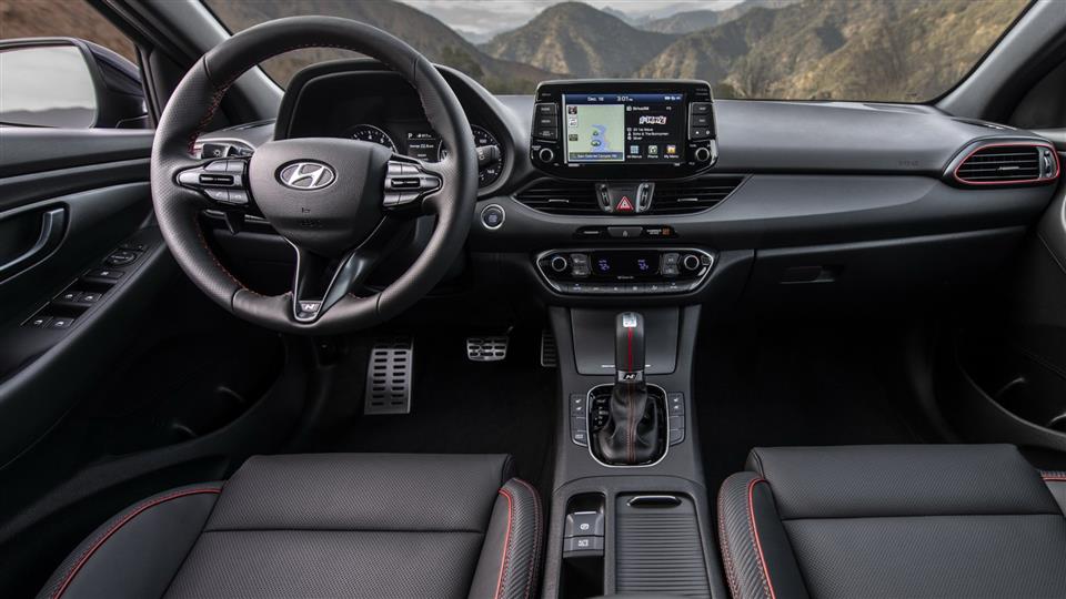 یکی از نقاط عطف طراحی داخلی النترا جیتی N لاین، غربیلک فرمان زیبای آن است که همخوانی فوقالعادهای با کمربندهای قرمز رنگش دارد. صندلیهای مسابقهای و سردنده این خودرو بخشی از زبان بصری خانواده N Line است که پیشتر روی ولوستر، i30 استاندارد و i30 فستبک دیده بودیم.
