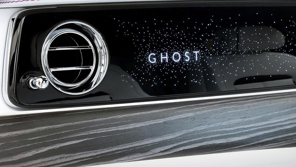 نکته جالب در این مدل را باید نصب قطعهای با روکش لاکی از چوب پیانو مشکی بر روی داشبورد دانست که تنها نیم میلیمتر ضخامت داشته ولی درون آن با 850 چراغ LED تزئین شده تا آسمان پرستاره را بر روی داشبورد گوست تداعی نماید.