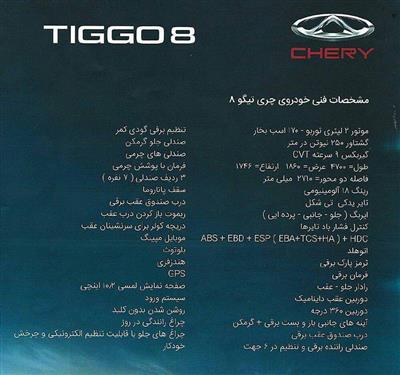 با توجه به تجهیزات درج شده در این کاتالوگ، ظاهرا همان آپشنهای تیگو 7 تیپ IE، در تیگو 8 نیز وجود دارد ولی با این تفاوت که تیگو 8 هفت نفره است ولی تیگو 7 پنج نفره! همچنان باید منتظر انتشار اطلاعات بیشتر این چینی گران قیمت در روزهای آینده باشیم.