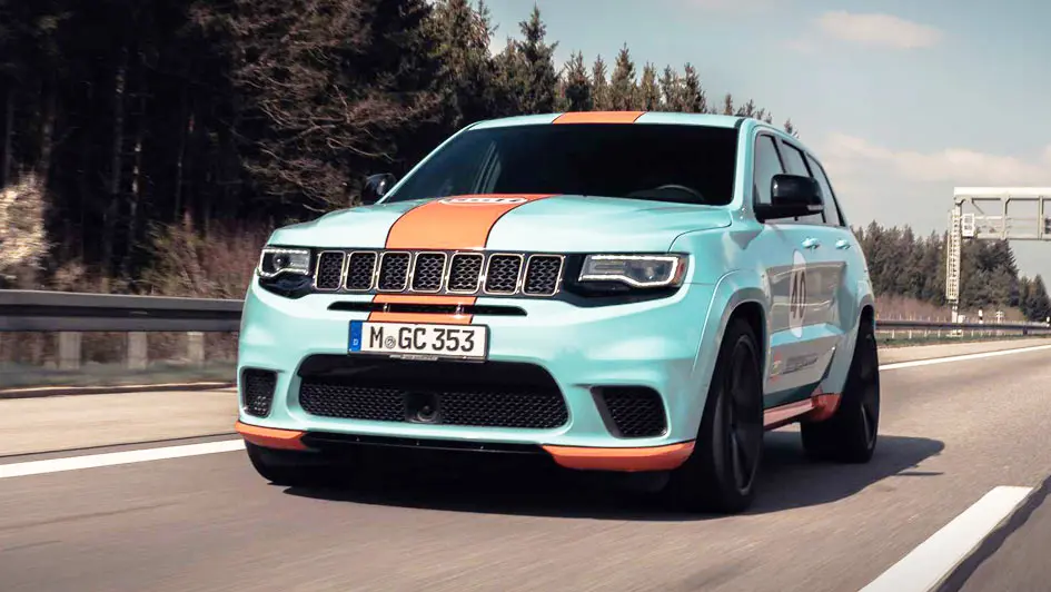 البته این ترکیب رنگ دوست داشتنی فقط مخصوص خودروهای مسابقهای نبوده و برخی خودروهای خیابانی هم از آن بهرهمند شدهاند. به طور مثال، میتوان به پورشه 911، فورد جیتی «هریتج ادیشن» (Heritage Edition)، مکلارن 675LT و حتی پورشه ماکان اشاره کرد. اما حال شاهد یک شاسیبلند دیگر هستیم که توسط یک شرکت تیونر آلمانی به نام «گایزرکارز» (GeigerCars)، صاحب ترکیب رنگ نمادین گالف شده است؛ جیپ گرندچروکی Trackhawk. البته شاید از نظر شما این ترکیب رنگ بر روی چنین خودروی بزرگ و مرتفعی چندان زیبا به نظر نرسد، ولی میتوان گفت این موضوع بستگی به سلیقه شما دارد.