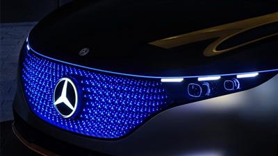 تمام مهندسی مربوط به قوای محرکه مرسدسبنز برقی جدید در مقابل طراحی سیستم نوردهی آن چیز پیش پا افتادهای به نظر میرسد. جلوپنجره نورانی این خودرو چیزی بیش از یک نمایش چشمنواز برای بینندگان است. درواقع این LEDهای نورانی آبی بخشی از سیستم چراغهای آن هستند. مرسدسبنز درباره این خودرو میگوید: نمای بیرونی مرسدسبنز EQS حس معلق بودن نشان نقرهای آن را بر بستر مشکی به وجود آورده است.