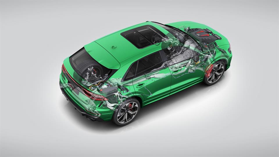 مانند آنچه در آخرین نسخه از آئودی RS6 آوانت شاهد بودیم، پیشرانه Q8 RS نیز به سیستم هیبرید خفیف 48 ولتی مجهز شده است. در حین شتابگیری و کاهش سرعت، نیروی تولید شده تا 12 کیلووات انرژی در باتری لیتیوم-یون این خودرو ذخیره میکند.