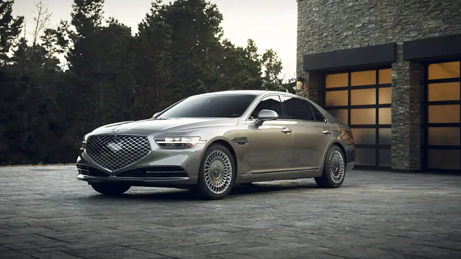 در همان نگاه اول به جنسیس G90 جدید، جلوپنجره بزرگ آن به همراه چراغهای جلو جلب نظر میکند. در نمای عقب نیز چراغهای LED عقب که به واسطه یک نوار LED به یکدیگر متصل شدهاند به همراه خروجیهای اگزوز کروم با فرم شبیه به جلوپنجره نگاه بیننده را به سوی خود میکشانند.