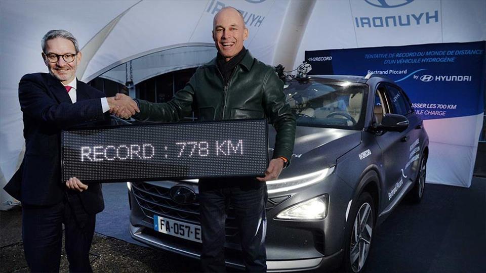 ”هیوندای نکسو ضمن رکوردشکنی بیشترین مسافت طی شده با یکبار سوختگیری توسط خودرویی هیدروژنی، موفق به تصفیه 404.6 کیلولیتر هوا شده است.“این خودرو که توسط خلبان فرانسوی یعنی آقای Bertrand Piccard رانده شده، توانسته با یکبار سوختگیری مسافت 778 کیلومتر را در شمال فرانسه طی کند. جالب است بدانید پس از طی این مسافت، خودرو هنوز سوخت کافی برای پیمودن 49 کیلومتر دیگر را نیز داشته است.