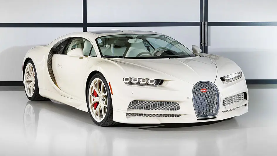 ممکن است در نگاه اول این خودرو یک بوگاتی شیرون معمولی با رنگ سفید مایل به کرم به نظر برسد، اما در واقع این طور نیست. به طور مثال، اگر به جلوپنجره این خودرو که طرحی شبیه به نعل اسب دارد دقت کنید، تعداد زیادی حرف انگلیسی H در آن به چشم میخورد که در کنار هم قرار گرفتهاند. به علاوه، بر خلاف نسخههای دیگر شیرون، رنگ همه قسمتهای سپر عقب با رنگ بدنه یکسان است.