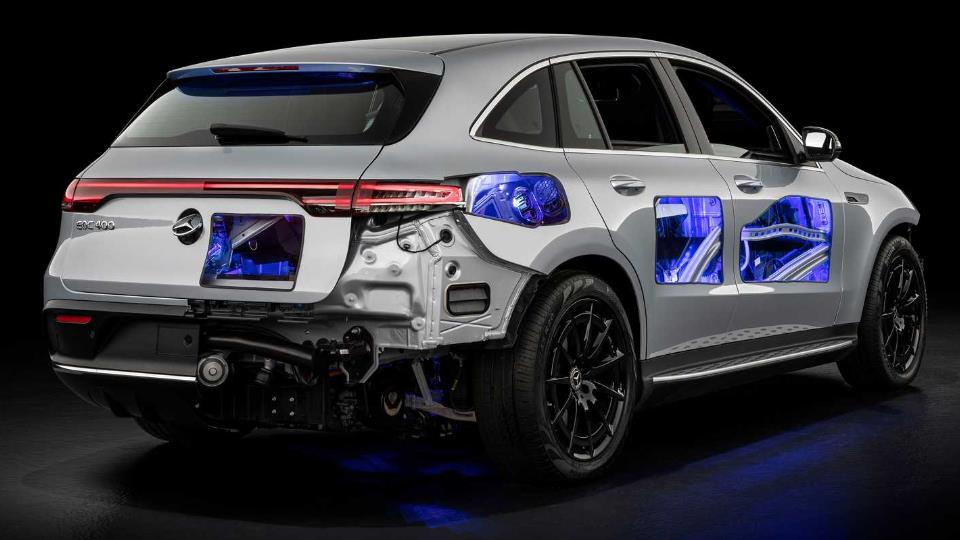اما بشنوید از یک نمونه خاص از مرسدسبنز EQC که توسط 40 کارآموز به گونهای ساخته شده که به لطف برش پنلهای بدنه و نصب چراغهای LED، اکنون میتوان داخل این قطعات را تماشا کرد. برای اجرای این پروژه ابتدا باید قطعات بدنه بریده شده، سپس لبه آنها نرم شده و سپس رنگآمیزی شود.