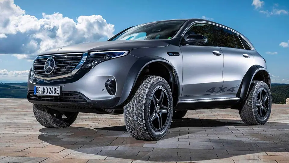 ”مرسدسبنز با معرفی کانسپتهای جدید برپایه مدل برقی EQC قابلیتهای این شاسیبلند برقی را به رخ کشیده است.“همچون مدلهای G500 4x42 و G650 لندولت که مدتی پیش ملاقات کردیم، ارتفاع تعلیق این شاسیبلند پاک هم افزایش یافته تا آن را برای آفرود بیشتر آماده کند.