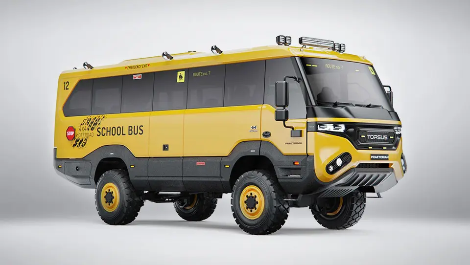”کف این اتوبوس 41.7 سانتیمتر از سطح زمین فاصله داشته و میتواند در عمق 61 سانتیمتری آب غوطهور شود.“اما تورسس در جدیدترین اقدام خود، مدل Praetorian را در قالب یک اتوبوس مدرسه جانسخت معرفی کرده که بنابر اعلام شرکت سازنده میتواند در شرایط سخت آب و هوایی و مواقع اضطراری مورد استفاده قرار گیرد.