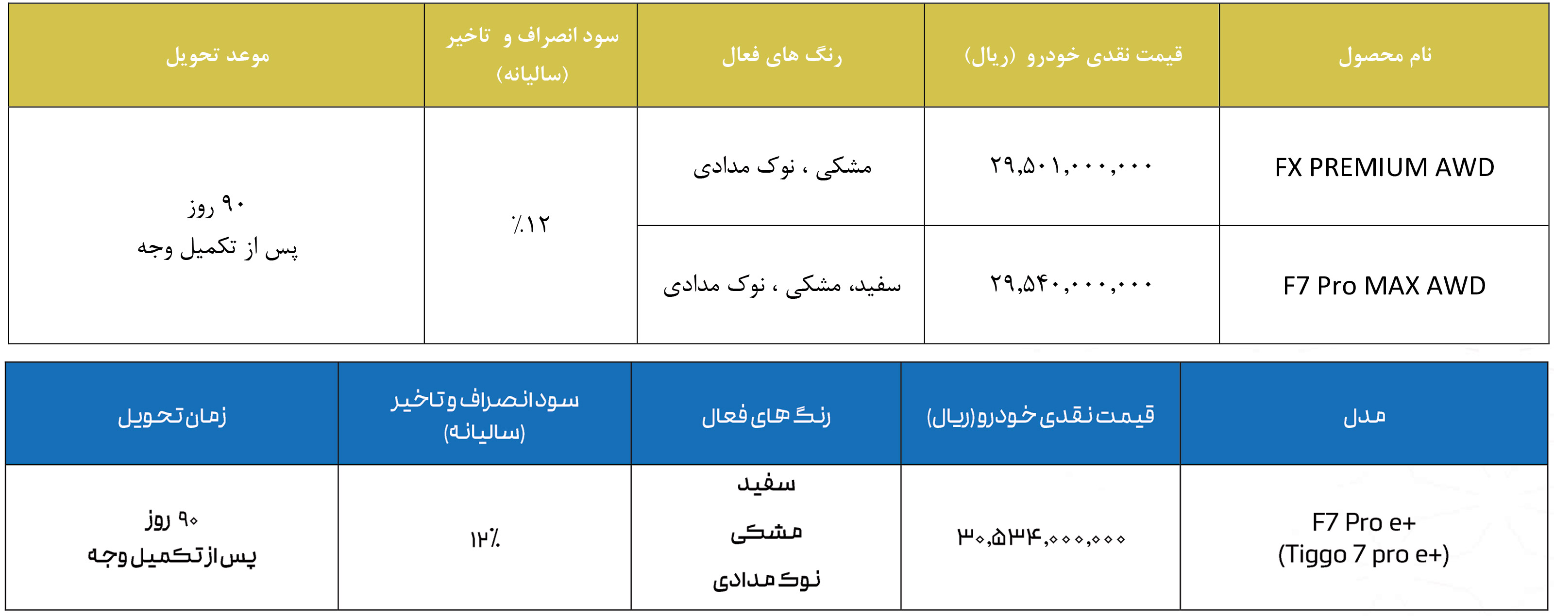 | فونیکس | F7 PRO MAX AWD | 2,904,900,000 | 2,954,000,000 | 49,100,000 |