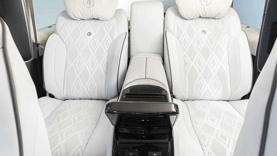 داخل کابین نیز دو صندلی مجلل و مستقل گنجانده شده و پوشش سرتاسری چرم ناپا و آلکانترا محسوس است. همچنین استفاده از دکوراتیو به رنگ مشکی پیانو و پوششهای آلومینیومی، فضایی منحصربهفرد به این آلمانی بخشیده است. خبر خوب برای سرنشینان G کلاس تولیدشده توسط شرکت تیونینگ هوفله این است که صندلیهای آن مجهز به ماساژور هستند.