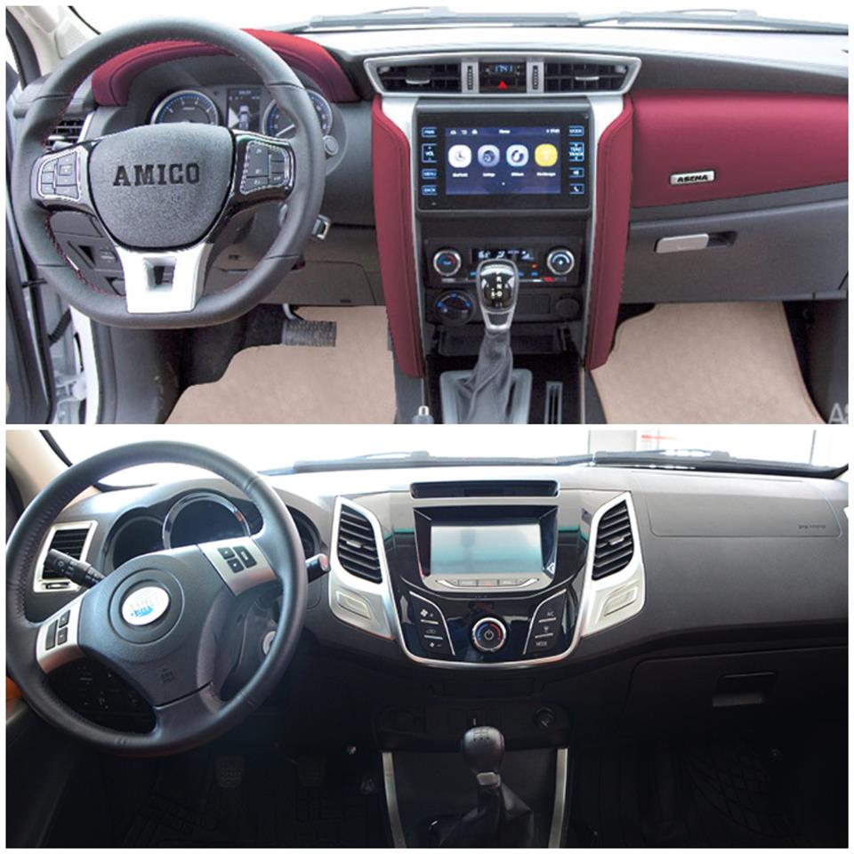 پیکاپ آمیکو آسنا اتومات علاوه بر تغییر موتور، تغییرات زیادی را هم در کابین تجربه کرده است طوری که مجموعه داشبورد، غربیلک فرمان، کیلومتر و حتی دریچههای تهویه و ... همگی جدید هستند. در تصویر زیر، تفاوت کابین آسنا دندهای (عکس پایین) را با کابین آسنا اتومات (عکس بالا) مشاهده میکنید.