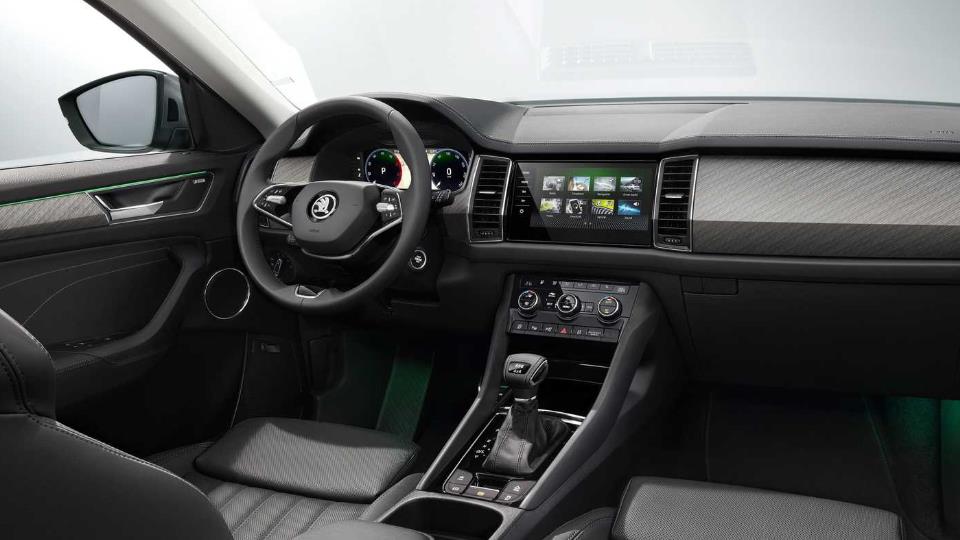 نورپردازی جدید LED، سیستم صوتی Canton با ده بلندگو و سابووفر و فرمان دوشاخه از سایر موارد جدید کابین اشکودا کودیاک بشمار میآیند.