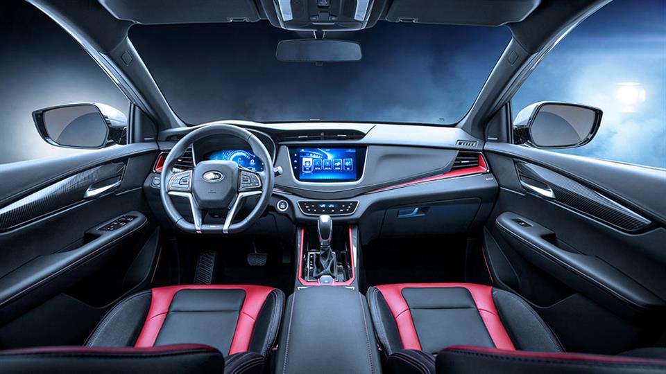 در نمای کابین، همچنان تناسب رنگهای قرمز و مشکی، به چشم میخورد و روکش چرم صندلیها و همچنین قاب اطراف دریچههای تهویه روی داشبورد، به رنگ قرمز هستند.