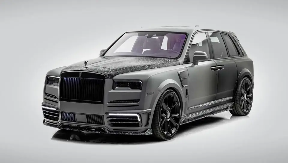 با رولزرویس کالینان شروع میکنیم. خودرویی که برای توسعه آن از یک کیت بدنه کامل استفاده شده است. در بخش جلو یک اسپلیتر ویژه نصب شده و نمای روبرویی آن را پایینتر از حد استاندارد باشد. گلگیرها نیز به کلی تغییر شکل یافتهاند. حالا روی این شاسیبلند فوق لوکس ورودیهای هوای بزرگتری دیده میشود. برجستهتر شدن رکابها نیز باعث درشتتر شدن چهره آن شده است. در قسمت انتهایی یک اسپویلر سقفی و یک دیفیوزر عظیمالجثه و البته اگزوزهایی دوبل دیده میشوند.