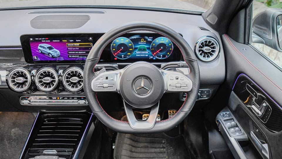 هندلینگ و سیستم تعلیق، گفتمانی منطقی و شفاف دارند. این وسط ترمزها هم ساز مخالف نمیزنند. پیشرانه و جعبهدنده نیز در یک سو هستند و هیچکدام از ارکان اصلی فنی برای خودخواهی، بخش دیگر را تحریم یا تحقیر نمیکند. مثلاً نمیتوانید بگویید پایداری در سطوح لغزنده با مرسدس بنز GLB عالی است ولی درعوض آفرود با آن افتضاح است. ولی خُب باید اعتراف کنیم که فرمانپذیریاش نمیتواند فشار و تنش را تحمل کند. اساساً این خودرو زیادی نازکنارنجی است و وقتی کمی با آن پرخاش میکنید، تلنگش درمیرود. چرخها گیج میشوند و بیدقتی فوران میکند. مرسدس خودش هم میداند که داستان چیست و به همین دلیل آمده ویرایش مرسدس AMG GLB 35 را محض قانع کردن منتقدین، عرضه کرده است.