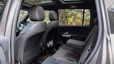 دیگر دیدن بعضی چیزها برایمان عادی شده. مثل فرمان دور دوز با نخ قرمز، نورپردازی کل اتاق با تونالیته دلخواه، استفاده هوشمندانه از ترکیب آلومینیوم و فیبر کربن و البته ساختار منحصربهفرد 3 دریچه دایرهای شکل تهویه مطبوع کنار هم. البته کاملاً مشخص است که GLB در قیاس با سایر شاسیبلندهای خانواده، کنسول خلوتتری دارد که این موضوع به شخصیت ساده و بیریای آن برمیگردد. شخصیتی آرام و مثلاً گوشهگیر که تواناییهایش را داد نمیزند. مثلاً نمیگوید که در همین اتاق نشیمن یک چیزی داشته که لندرور دیسکاوری و اشکودا کودیاک را بیچاره کرده. کمی قبول کردنش سخت است ولی این خودرو 7 نفره است.