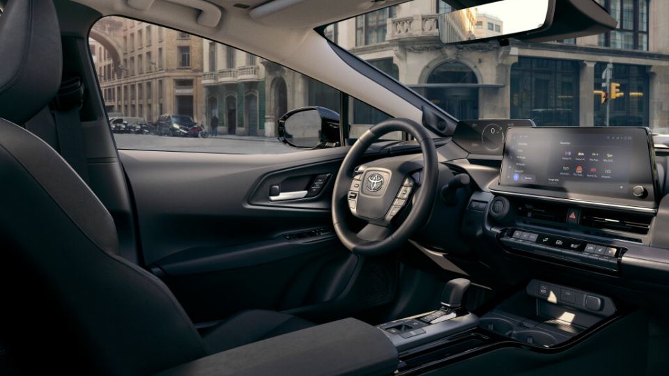 فضای کابین تویوتا پریوس 2023 تحت تاثیر زبان طراحی Island Architecture یا ساختار جزیره شکل گرفته است، که بر سه عامل «ماژول راننده»، «محیط پیرامون» و «صفحه پشت آمپر شناور» استوار است. نمایشگر مقابل راننده به جای قرارگیری در یک محیط بسته، روی داشبورد قرار گرفته است، موردی که مشابه آن را قبلاً در تویوتا bZ4X مشاهده کردهایم.