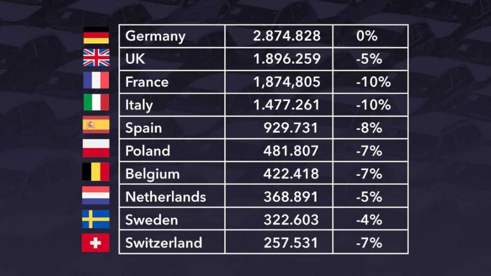 کاهش یک درصدی آمار فروش خودرو در برزیل، این کشور را بالاتر از بریتانیا و فرانسه با 5 و 10 درصد کاهش قرار داده است. کاهش تقاضا، کمبود خودروهای صفرکیلومتر و بحران انرژی، از مهمترین عوامل در کاهش 6 درصدی آمار فروش خودرو در اروپا بشمار می­‌آید. اگر ترکیه را هم حساب کنیم، در سال گذشته 13.71 میلیون دستگاه خودرو در اروپا به فروش رسیده است.
