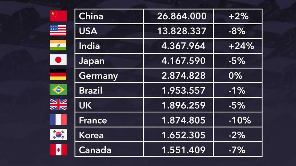 با مرور آمار فروش خودروی سواری و تجاری سبک در 78 کشور جهان در سال 2022 که برابر با 78.49 میلیون دستگاه بوده، کاهش 2 درصدی نسبت به سال قبل قابل تشخیص است. اگر فروش خودرو در سایر کشورها را نیز به این رقم اضافه کنیم، می‌­توان رقم تقریبی 81.5 میلیون دستگاه را درنظر گرفت.