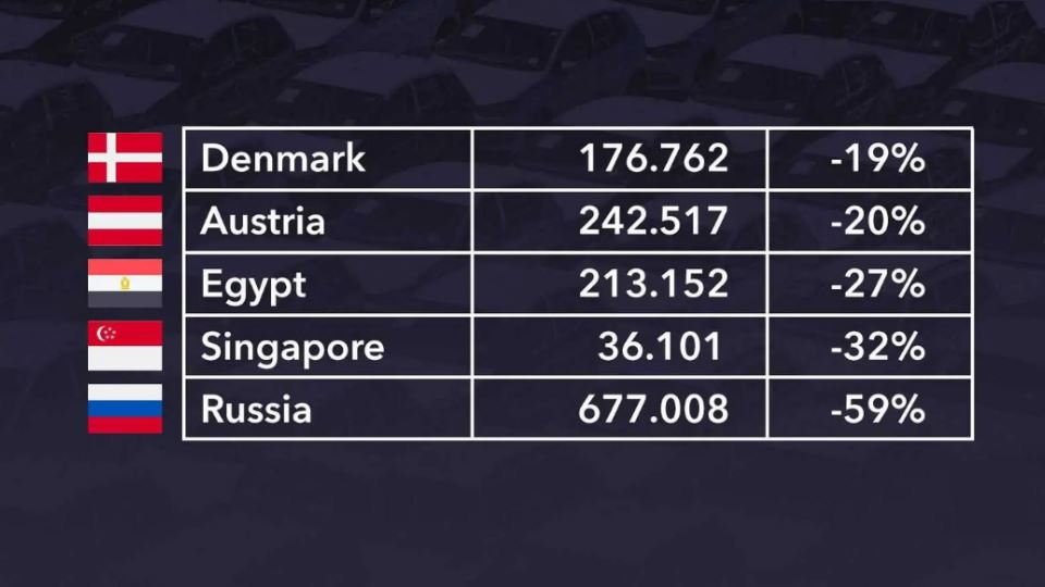 همانطور که انتظار می‌­رفت، بازار خودروی روسیه با 59 درصد کاهش فروش به ثبت آمار 677 هزار دستگاه رضایت داده است. ناامنی اقتصادی و خروج برندهای جهانی، باعث شده این کشور در جایگاه پایین تر از ترکیه، تایلند، استرالیا و مکزیک قرار بگیرد.