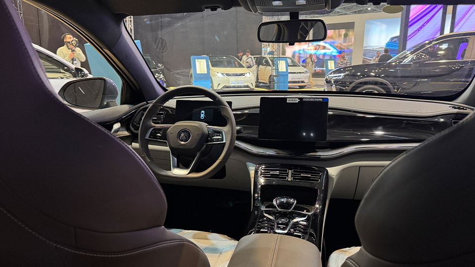 برای فضای داخلی چین پلاس پلاگین هیبرید، دو رنگ جدید قهوهای و آبی اضافه شده است. پنل ابزار ۸.۸ اینچی، صفحه نمایش مرکزی ۱۰.۱ و یا ۱۲.۸ اینچی و فرمان سه شاخه، از ویژگیهای کابین است.