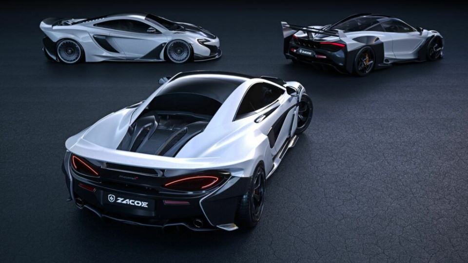 این پکیجها از برخی از نمادیترین خودروهای مسابقهای شرکت، مانند M8D Can-AM الهام گرفته شدهاند. با 570S شروع میکنیم. به وضوح مشخص است که زاکو یک اسپلیتر جلوی عظیم برای آن ساخته که حالتی دراماتیک پیدا کرده و آن را بهشدت متمایز کرده است. مکمل این اسپلیتر، ورودیهای هوای جلو و همچنین یک کاپوت با هواکشهای بزرگ است.