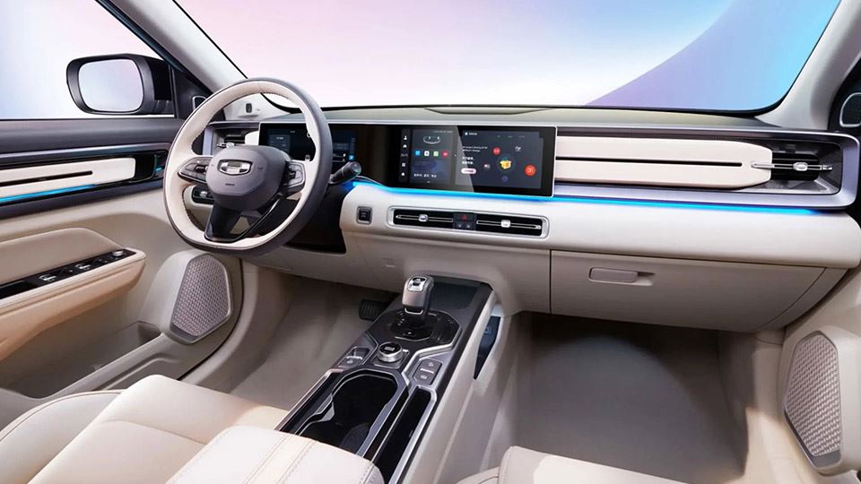 کابین خودرو یک فضای گرم است که پارچه بژ و تزئینات آبی روشن پوشیده شده است. نورهای محیطی آن ۷۲ رنگ دارند. فرمان سه شاخه آن با مواد مشکی پوشیده شده است. یک نمایشگر ۱۰.۲۵ اینچی صفحه کیلومتر و نمایشگر ۱۲.۳ اینچی کنترل مرکزی دیده میشود. سیستم اطلاعات سرگرمی آن توسط سیستم عامل گلکسی پشتیبانی میشود. در قسمت زیرین صفحه نمایش، دو خروجی تهویه هوا دیده میشود. کابین خودرو قابلیت تشخیص چهره و تعامل صوتی دارد.