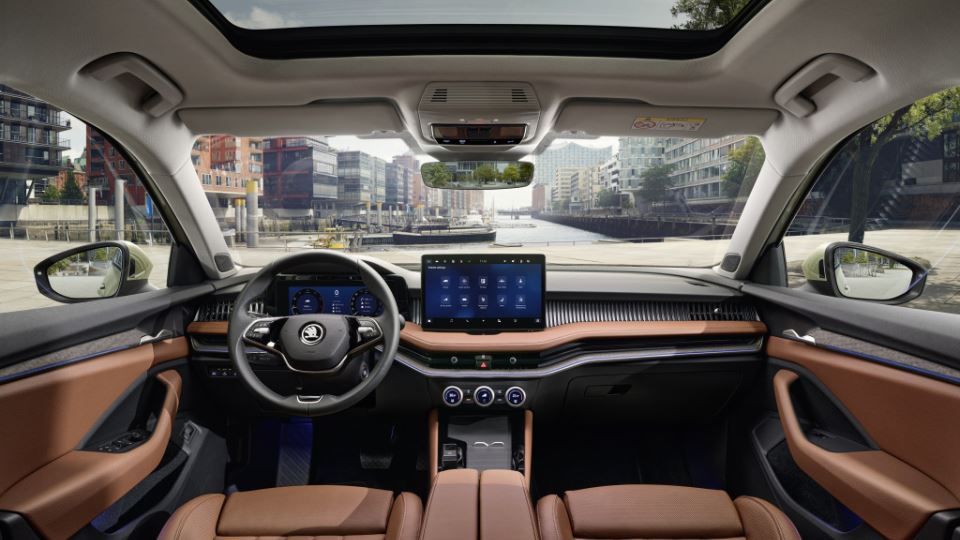 برخلاف طراحی ظاهری، کابین اشکودا سوپرب 2024، نونوار شده و کنترلهای سنتی را تاحدی کنار گذاشته است. بسته به تریم، نمایشگر 10 یا 13 اینچی سیستم اطلاعاتی-سرگرمی ارائه میشود، در حالیکه پشت آمپر دیجیتالی 10 اینچی استاندارد خواهد بود. برای اولین بار، نمایشگر مجازی روی شیشه (هداپ) را هم میتوان سفارش داد.