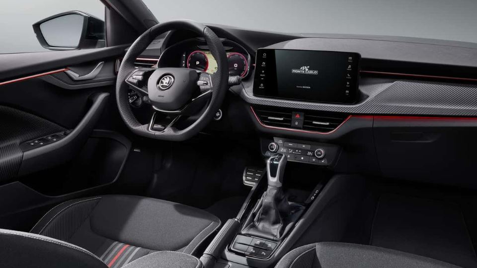 با ورود به فضای کابین اشکودا کامیک و اسکالا 2024، میتوان مواردی شامل افزایش ابعاد پنل تهویه و استفاده از مواد بازیافتی در ساخت پوشش داخلی درها و بالای داشبورد را تشخیص داد. در نسخه پرچمدار مونتهکارلو، نورپردازی قابل تنظیم LED و پشت سریهای متصل به صندلی هم نصب شده است.
