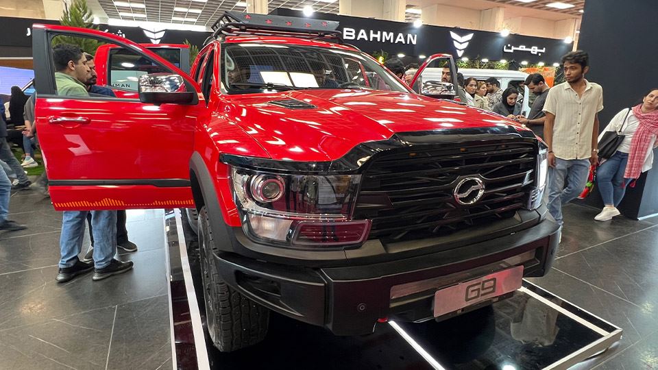 علاوه بر اینرودز، پیکاپ G9 در رنگ جذاب قرمز در غرفه بهمن موتور در نمایشگاه آفرود حضور داشت. این پیکاپ که چند ماه پیش رونمایی شده، تغییراتی در بخش قوای محرکه داشته و توان پیشرانه آن از 195 به 220 اسب بخار افزایش یافته و قرار است که از پاییز به بازار عرضه شود.