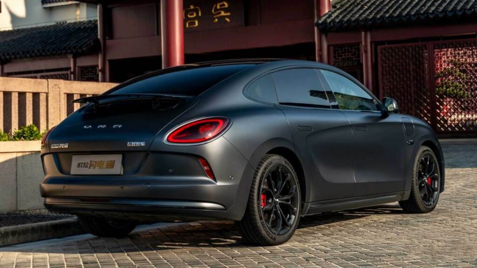 بدنه نسخه دارک نایت نسبت به مدل استاندارد هیچ تغییر طراحی را تجربه نکرده است، اما رنگ مشکی مات، رینگهای 19 اینچی مشکی براق با تایرهای PS EV ساخت میشلن و کالیپرهای قرمز را به همراه دارد.