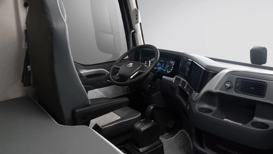 طراحی داخل کابین نیز در وضعیت بسیار خوبی است. داشبورد طراحی به روزی دارد و از کیفیت بسیار خوبی نیز برخوردار است. طراحی داشبورد دقیقاً همان چیزی است که در کشنده این خودرو نیز دیده میشود. وجود یک تختخواب در پشت صندلیها، مکانی مناسب برای استراحت راننده هست که این روزها، کابین کمپرسیهای بازار نیز معمولاً از نوع اتاق خوابدار ساخته میشوند. رویهای که قبلاً در بازار کشورمان بسیار کم دیده میشد.