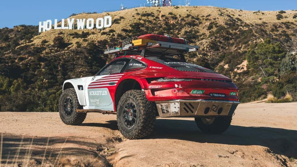 رینگهای 16 اینچی با تایرهای آفرودی 34 اینچی، فاصله کف تا سطح زمین پورشه 911 راک کرالر را به 34.7 سانتیمتر رسانده، که حتی از فورد F-150 رپتور یا رم 1500 TRX هم بیشتر است. اکسلهای پورتال هم در بیراههنوردی به این خودرو یاری رسانده در حالی که گیربکس با ضریب دنده 1:3.6 از برند آلمانی Tibus تامین شده است، دندههای یک و دو را در عمل به دنده سنگین تبدیل میکند. بنابر اعلام پورشه سرعت این خودرو در دنده هفتم به صد کیلومتر بر ساعت میرسد، بنابراین با کندترین نسخه از پورشه 911 مواجه هستیم.