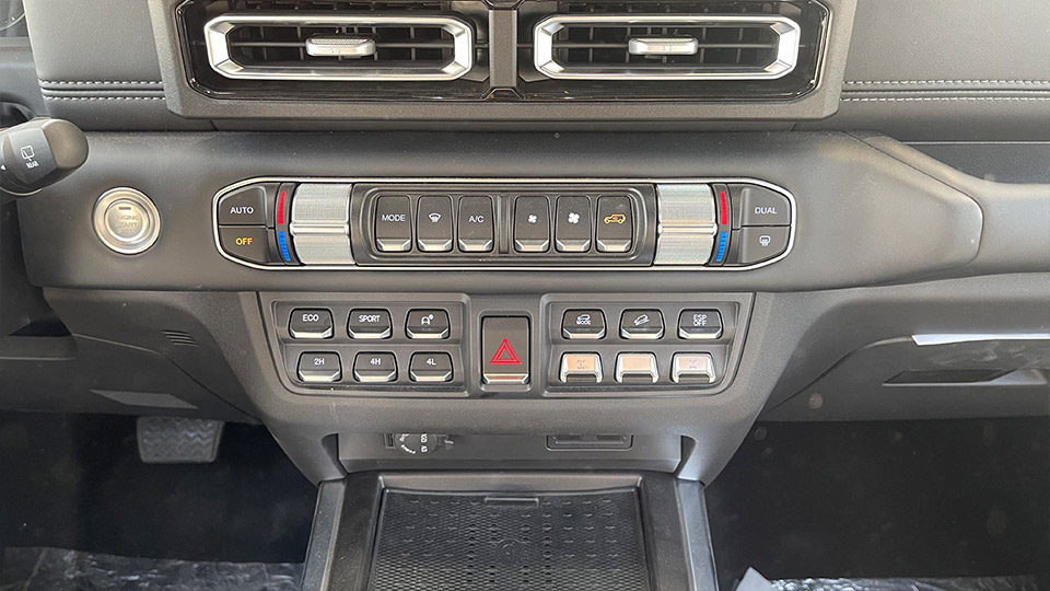 در این خودرو نه تنها کلیدهای کنترلی فیزیکی حذف نشده است، بلکه همچون خودروهای آفرودی تراز اول جهان، این کلیدهای مکانیکی با تاکید بیشتر و در تقارن کامل بر میانه داشبرد مستطیلی خودرو جا خوش کرده که استفاده از آنها را بسیار ساده میسازد.