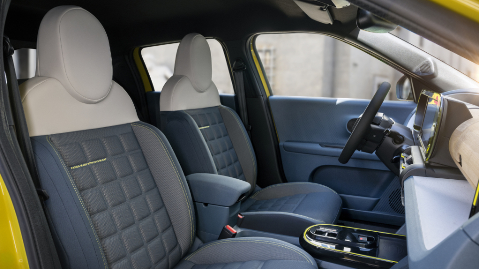 فضای کابین فیات گرند پاندا حتی در تیپ پایه یعنی Pop هم طراحی و کیفیت مناسبی دارد. در کابین این خودرو از پلاستیک بازیافتی حاصل از جعبههای تترا-پک استفاده شده است. برای ساخت قطعات کابین هر دستگاه فیات گرند پاندا، تقریبا 140 جعبه تترا-پک بازیافت میشود. در کابین تیپهای گرانتر میتوان مواد ساخته شده از بامبو طبیعی را نیز مشاهده کرد.