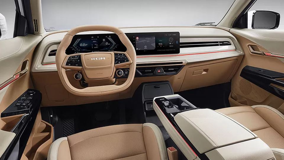 مطابق با انتظار، در فضای کابین کی جی ام اکتیون نیز با طرحی مشابه با تورس و دو نمایشگر 12.3 اینچی در کنار یکدیگر، روبرو هستیم. البته فرمان شش ضلعی به همراه برخی جزئیات دیگر، مختص به این مدل است.