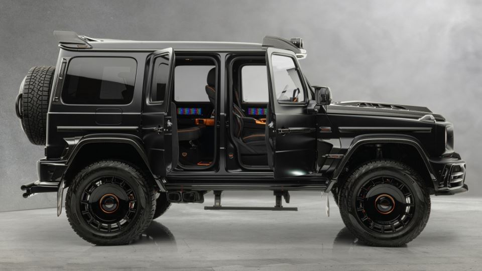 این مرسدس AMG G63 4×4² تماما مشکی، توسط شرکت تیونینگ منصوری اصلاح شده است.