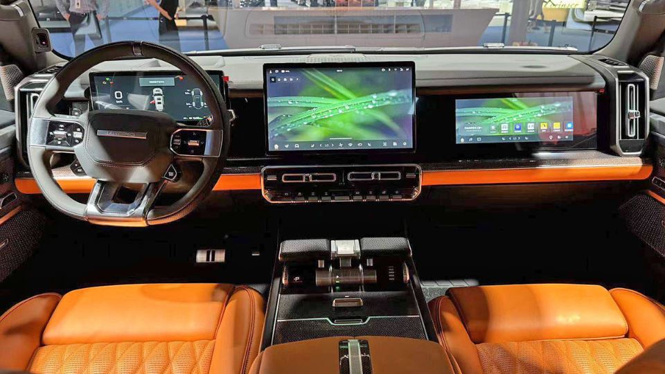 طراحی داخلی منگشی M800 نسبت به مدل استاندارد فقط در روکش نارنجی روشن و تریم فیبرکربن در داشبورد و پوشش داخلی درها تفاوت دارد.