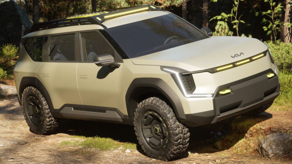 کیا EV9 ادونچر در عین حفظ اصالت اولیه خود به عنوان شاسیبلند برقی، با سه ردیف صندلی، با چهرهای بسیار خشنتر از قبل دیده میشود. به لطف افزایش 7.5 سانتیمتری ارتفاع بدنه، اضافه شدن رینگهای جدید با تایرهای چهارفصل و باربند سفارشی، این خودرو برای ماجراجویی در سالهای آینده، آماده شده است.
