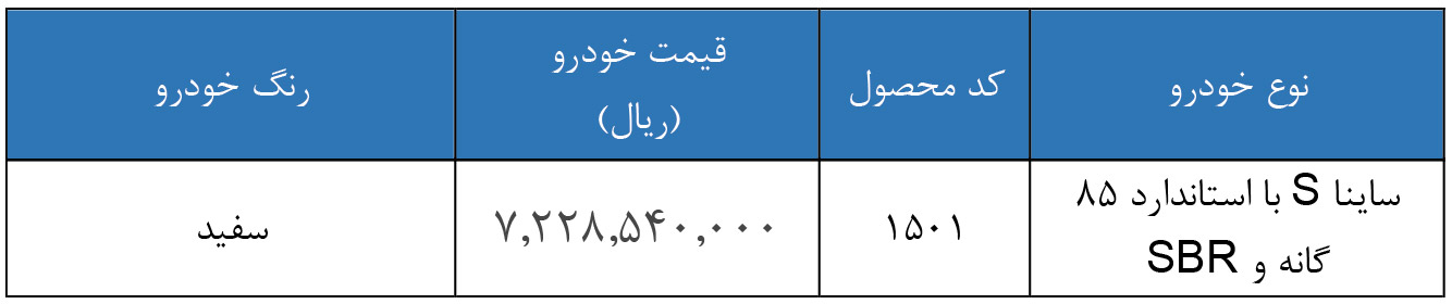 شرکت خودروسازی سایپا در تیرماه 1404، لیست قیمت ثبت نام خودرو ساینا را مطابق جدول زیر اعلام کرده است: