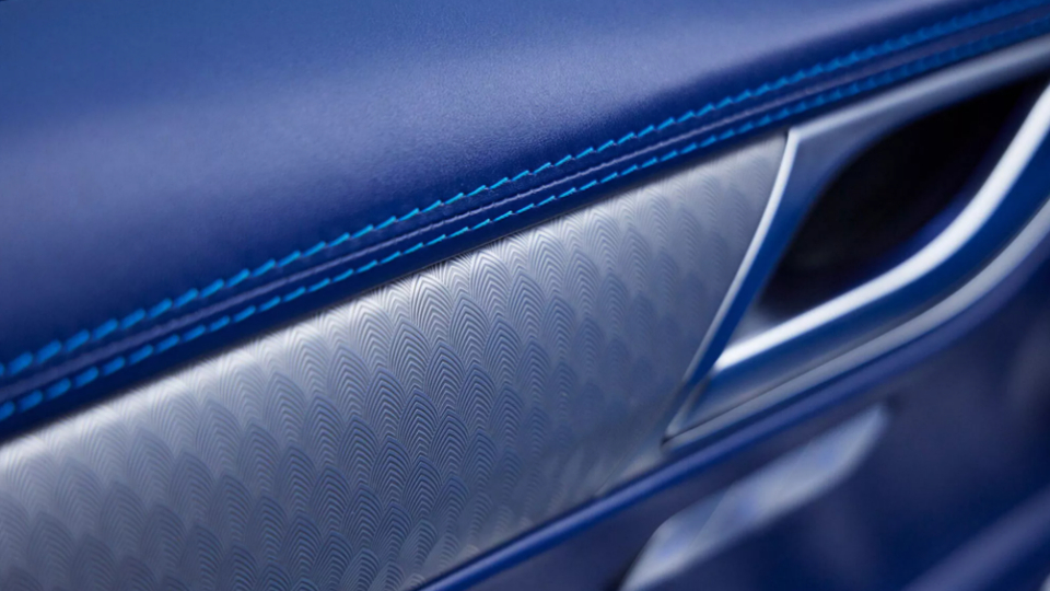 ترکیب رنگ مشکی و آبی به داخل کابین این جنسیس GV80 خاص سرایت کرده است. از دیگر ویژگیهای این بخش میتوان به طراحی متفاوت در روکش چرمی صندلیها و همچنین تریم فیبرکربن داشبورد و کنسول میانی اشاره کرد.