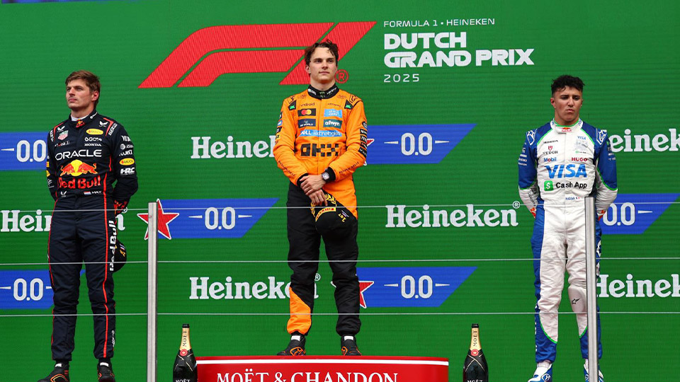 اما پیروز گرندپری فرمول وان هلند، اسکار پیاستری از تیم مکلارن بود که توانست 72 دور این مسابقه را مدت زمان یک ساعت و 38 دقیقه و 29.8 ثانیه طی کند. پیاستری حالا هفت پیروزی در فصل 2025 و 9 پیروی در تمام دوران حرفهای خود را به ثبت رسانده است.