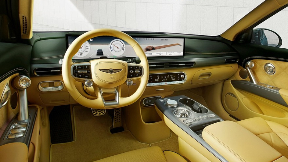 در کابین جنسیس GV60 با نمایشگر 27 اینچ یکپارچه به جای دو نمایشگر قبلی، طراحی جدید فرمان و تغییر متریال تریم، مواجه هستیم. بنابر اعلام سازنده، ضخامت عایق صوتی مخصوصا در درزهای شیشه جلو، افزایش یافته است.