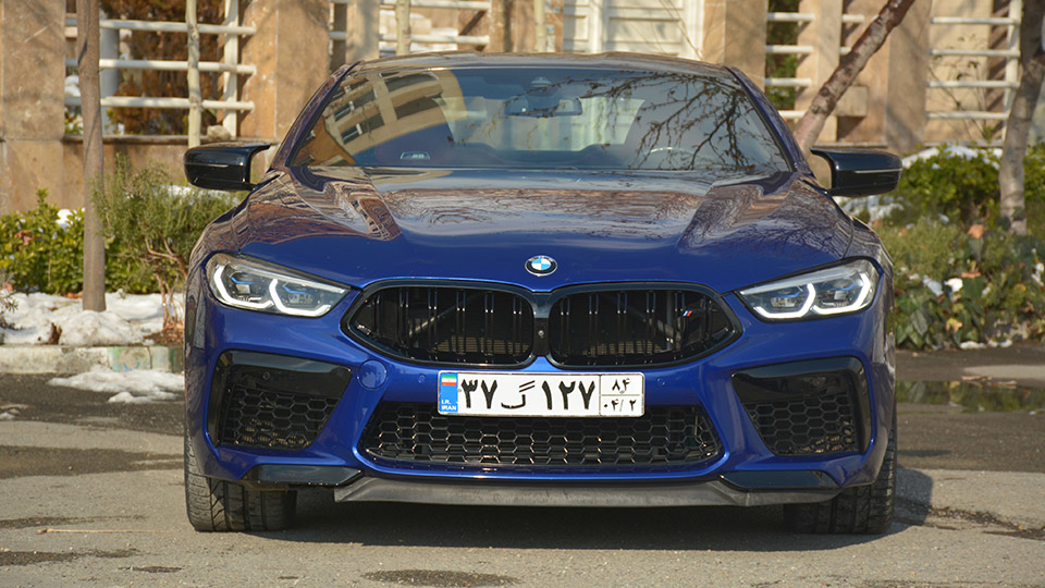 در حالی که ب ام و روی محصولات جدیدش به طرزی دیوانه‌وار از جلوپنجره‌های عظیم‌الجثه استفاده می‌کرد، اما در اقدامی تحسین‌برانگیز روی سری 8 ملاحظه‌کاری کرد و جلوپنجره‌ای متناسب با زبان تهاجمی آن را تعبیه کرد. با استادی هرچه تمام‌تر در M8 شاهد یک اخم و تخم دلهره‌آور هستیم. این الگوریتم ترسناک حتی در جزئیات هم رعایت شده است. چراغ‌های کشیده، سپری پر از هواکش و توری هندسی. برش‌های روی کاپوت حجیم آن نه تنها باعث شده حس و حال یک خودروی عضلانی را به بیننده القا کند بلکه روی آیرودینامیک هوشمندانه آن هم تأثیر گذاشته است.