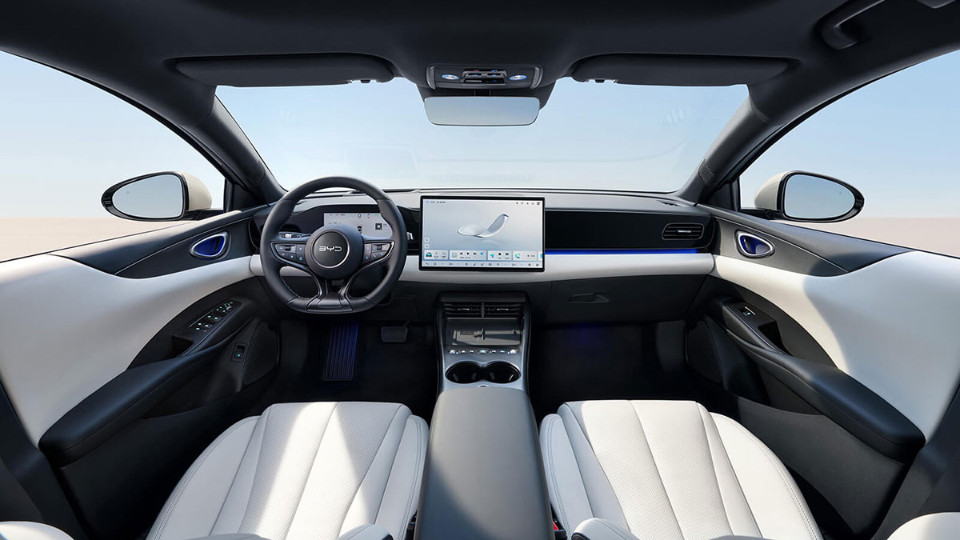 طراحی داخلی بی وای دی سیل 06 برقی به همتای هیبرید شباهت دارد. در این بخش با صفحه نشاندهنده LCD، نمایشگر لمسی 15.6 اینچ با قابلیت چرخش و رابط کاربری DiPlink 100، اهرم دنده روی فرمان، دو جالیوانی، 24 فضای کوچک برای لوازم و دو شارژر بیسیم، روبرو هستیم. علاوه بر صندوق عقب 423 لیتری، یک فضای 65 لیتری هم در زیر کاپوت قرار دارد.