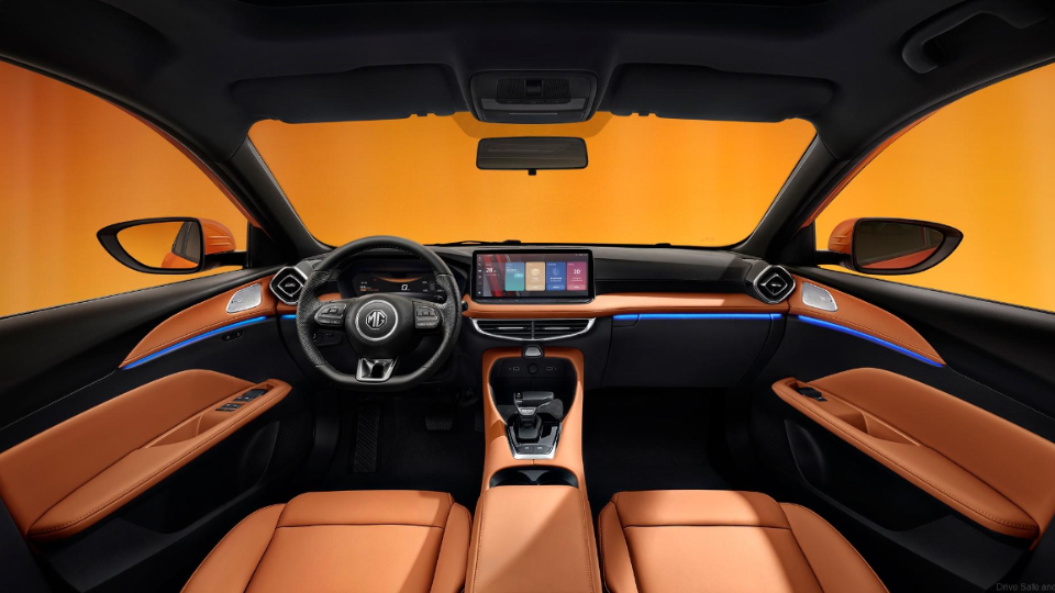 به جز اضافه شدن ترکیب رنگ مشکی و نارنجی، طراحی فضای داخلی ام جی 5 مدل 2026 نسبت به قبل تغییری نداشته است. در این بخش همچنان با صفحه نشاندهنده 12.3 اینچ، نمایشگر لمسی 10.25 یا 12.3 اینچ، فرمان سه پره D-شکل، روکش ترکیبی چرم و پارچه و تعدادی دکمه فیزیکی در پایین نمایشگر میانی روبرو هستیم. در تیپ کامل، سیستم صوتی جدید با 8 بلندگو و نورپردازی هماهنگ با موسیقی با 256 رنگ هم اضافه میشود.