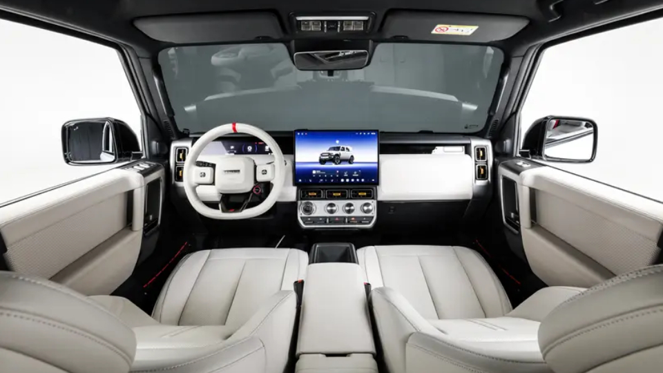 برخلاف بدنه چری آیکار سوپر V23 که به آفرودرهای کلاسیک شباهت دارد، در فضای داخلی با طرحی مدرن مواجه هستیم که نمایشگر لمسی 15.4 اینچ با پشتیبانی از کارپلی، هایکار و کارلینک، کلیدهای دایرهای و ترکیب رنگی سفید را به همراه دارد. در این تیپ، نشان قرمز S هم روی فرمان دیده میشود.