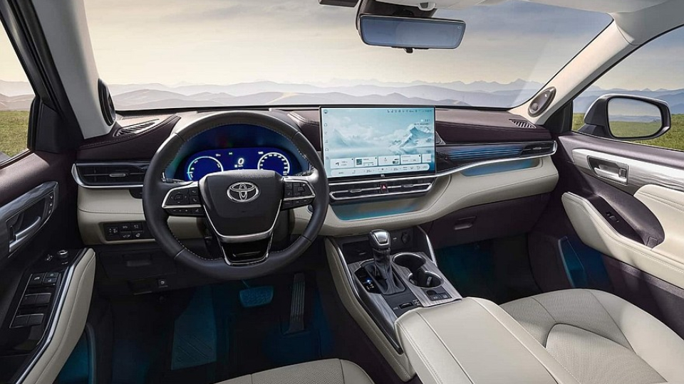 چهره تویوتا هایلندر جدید با مدل قبلی تفاوتی ندارد و برای مشاهده تغییرات باید به فضای داخلی مراجعه کرد. در این بخش با نمایشگر لمسی 15.6 اینچ روبرو هستیم، درحالیکه در تیپهای مختلف مدل قبلی، نمایشگر 10.25 یا 12.3 اینچ نصب میشد. علاوهبراین باید به شارژر بیسیم 50 وات و افزایش کیفیت قطعات اشاره کرد. همچون گذشته، کابین این خودرو به صورت 5 یا 7 نفره چیدمان میشود.
