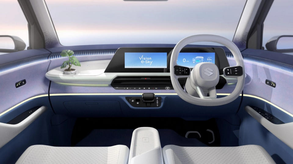در فضای داخلی سوزوکی ویژن ای-اسکای با طرحی ساده و خوشایند مواجه هستیم که دو نمایشگر دیجیتال در کنار هم، تعدادی دکمه لمسی در بخش میانی داشبورد، کنسول میانی با طراحی معلق و محل شارژر بیسیم را به همراه دارد.